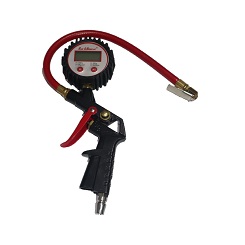 A digital tire inflator gauge is a sophisticated tool that combines the functions of pressure measurement and controlled inflation specifically designed for tires. Featuring a digital display, this device accurately measures air pressure and provides a clear numerical readout in units such as pounds per square inch (PSI) or other relevant pressure metrics. Equipped with a valve connector, it allows users to inflate or deflate vehicle tires with precision, ensuring they are maintained at the recommended pressure levels for optimal performance, s...