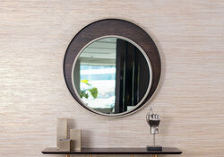 Riveting in detail, the Dusty Mirror circles in on contemporary, clean-lined design. A tangent of nestled circles, the mirrored surface pops against a rich backdrop of espresso oak edged with a slim band of titanium. Understated and elegant, the Dusty Mirror makes for a luxe accent, full of timeless allure.